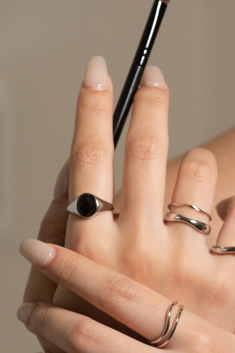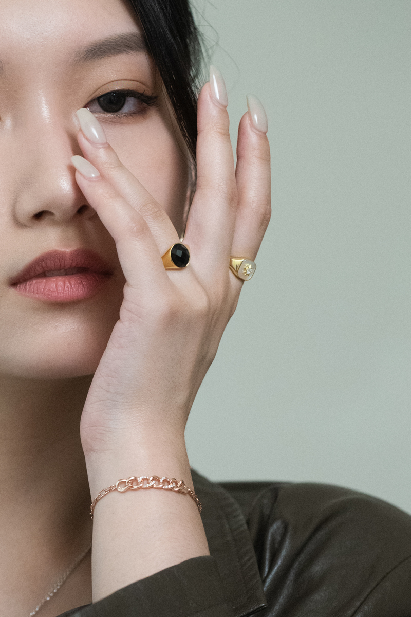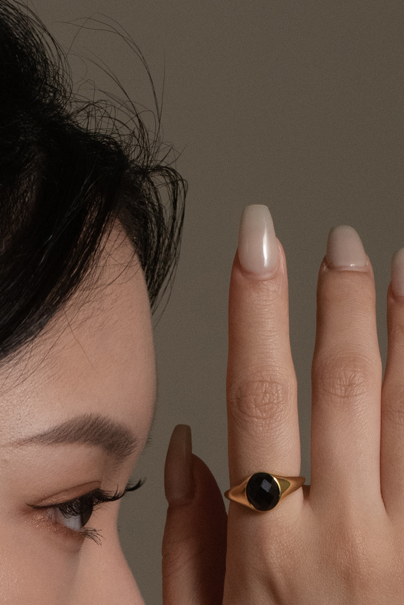 主石:黑瑪瑙,玻璃面菱形切割